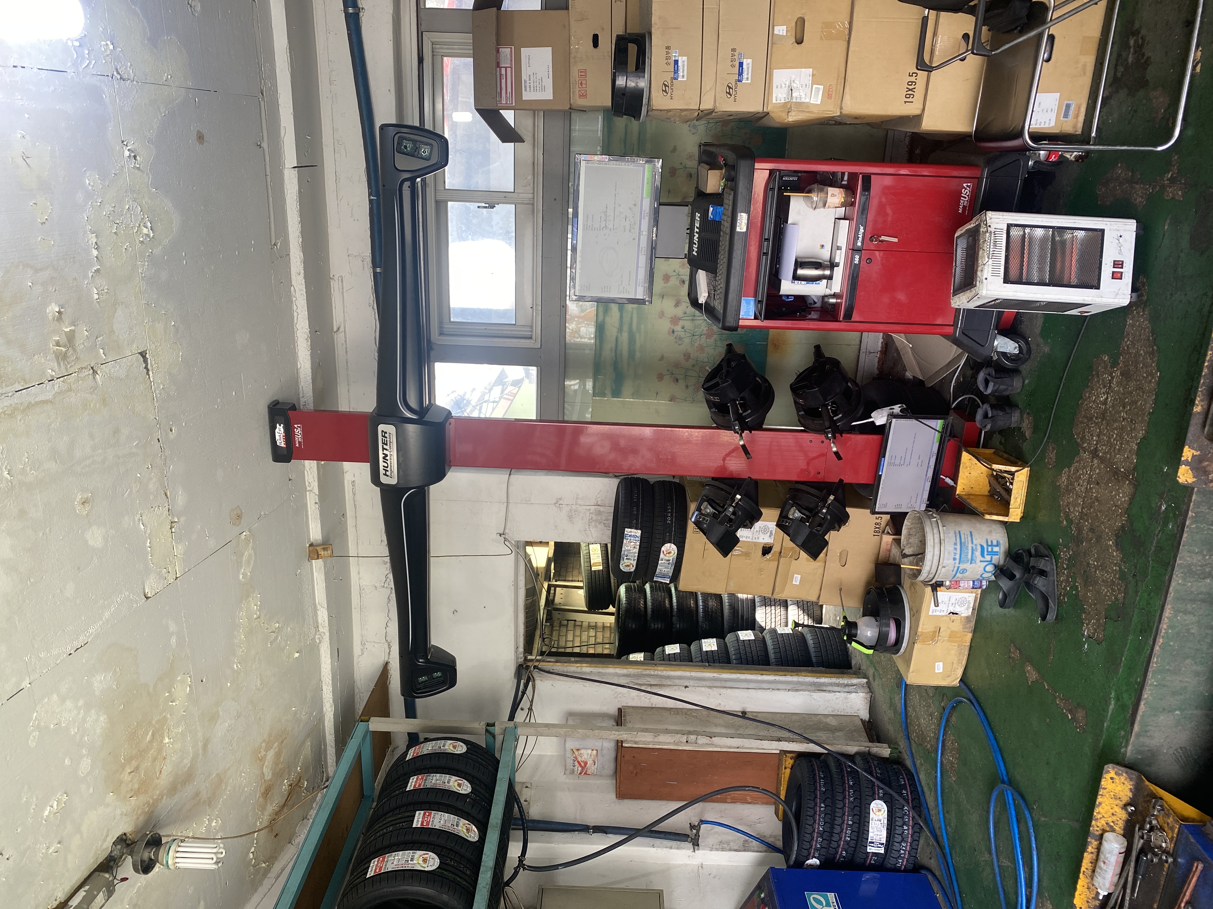 헌터3d휠얼라이먼트 보유 최신 23인치까지 작업가능한 고르기 탈착기 보유! 010-2270-0113 장착점 하고싶습니다!