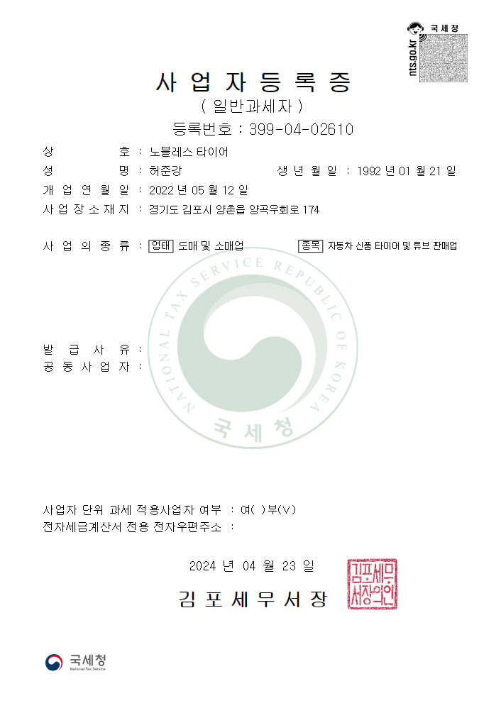 기존에 광명에 노블레스 타이어 장착점으로 매장 운영하였는데